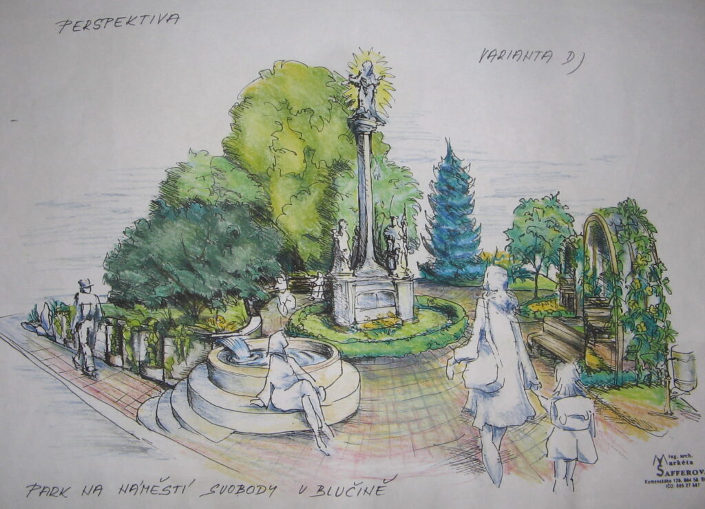 Z historického hlediska však má náměstí splňovat shromažďovací funkci. Bylo potřeba ho více otevřít a zároveň vytvořit prvky, které budou vyzývat k zastavení a k zobytnění centrálního prostoru obce. Také výsadba s osvětlením se stala důležitým prvkem.